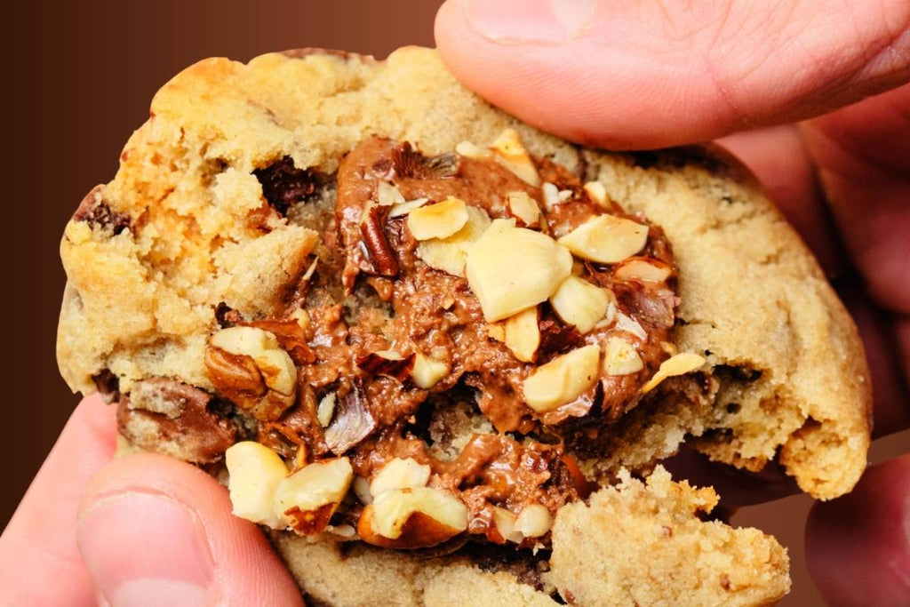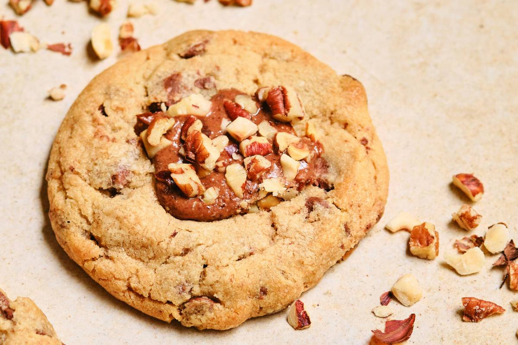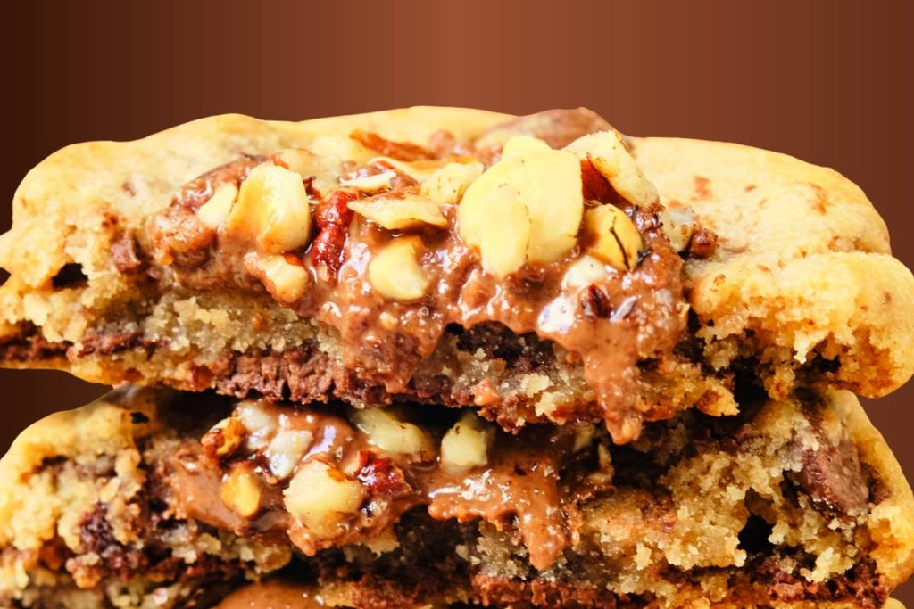 Discover The Pralinest, a soft milk chocolate chip cookie with a generous, homemade praline centre, delicately placed on the cookie while still warm to achieve the perfect balance of textures.